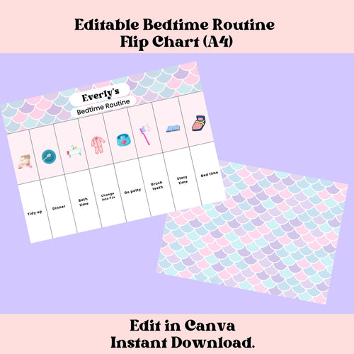 Bedtime Routine Flip Chart for Girls Editable Canva Checklist Personalized Routine Chart for Toddlers Preschool Bedtime Activity Chore Chart